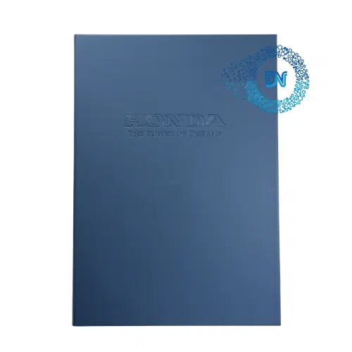 Kỹ thuật này dùng khuôn ép lún hoặc nổi logo, tên trường… lên bề mặt bìa, tạo ra hiệu ứng 3D tinh tế. Đây là lựa chọn cho những ai yêu thích sự tối giản nhưng khác biệt.